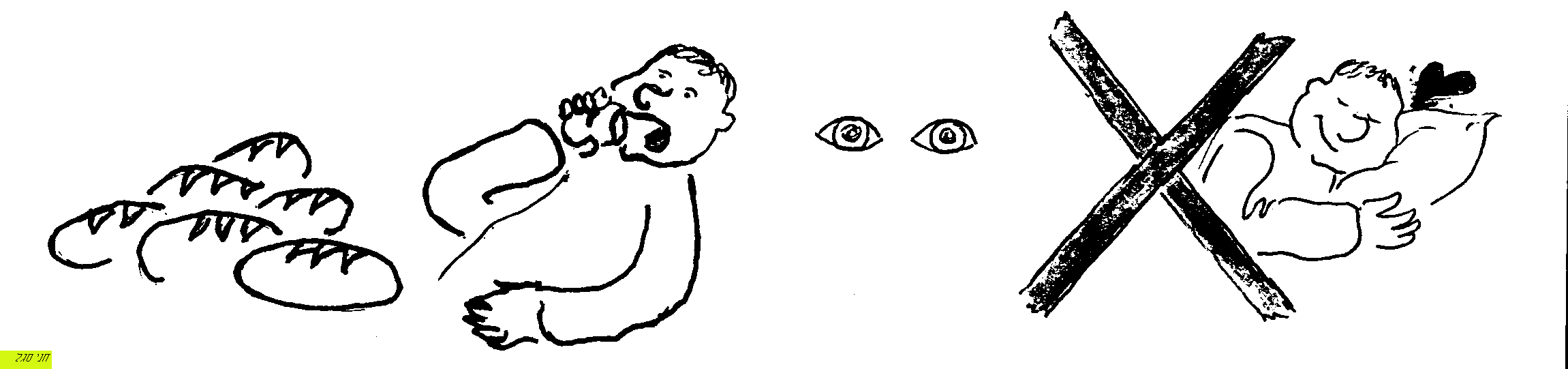 כדי להתמודד עם היצר המושך את האדם להמשיך לישון, יש להשתמש ביצר חומרי אחר - יצר האכילה. כשהגוף מרגיש שמחכה לו ארוחה טובה, תהיה לו יותר מוטיבציה לקום בבוקר.