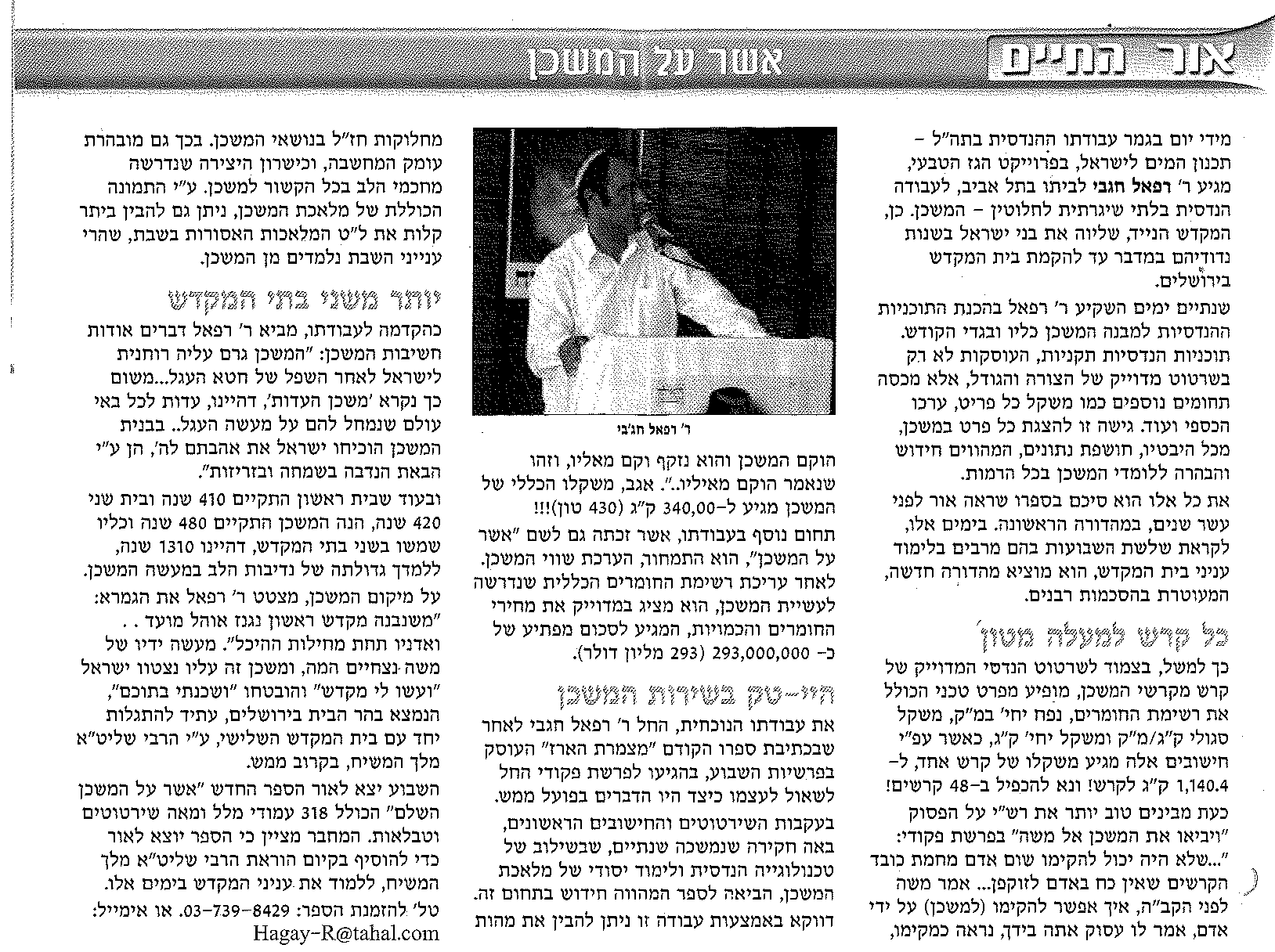 עדכון בקורת אשר על המשכן על הספר קמח כלי המשכן מאת אורי כהן
