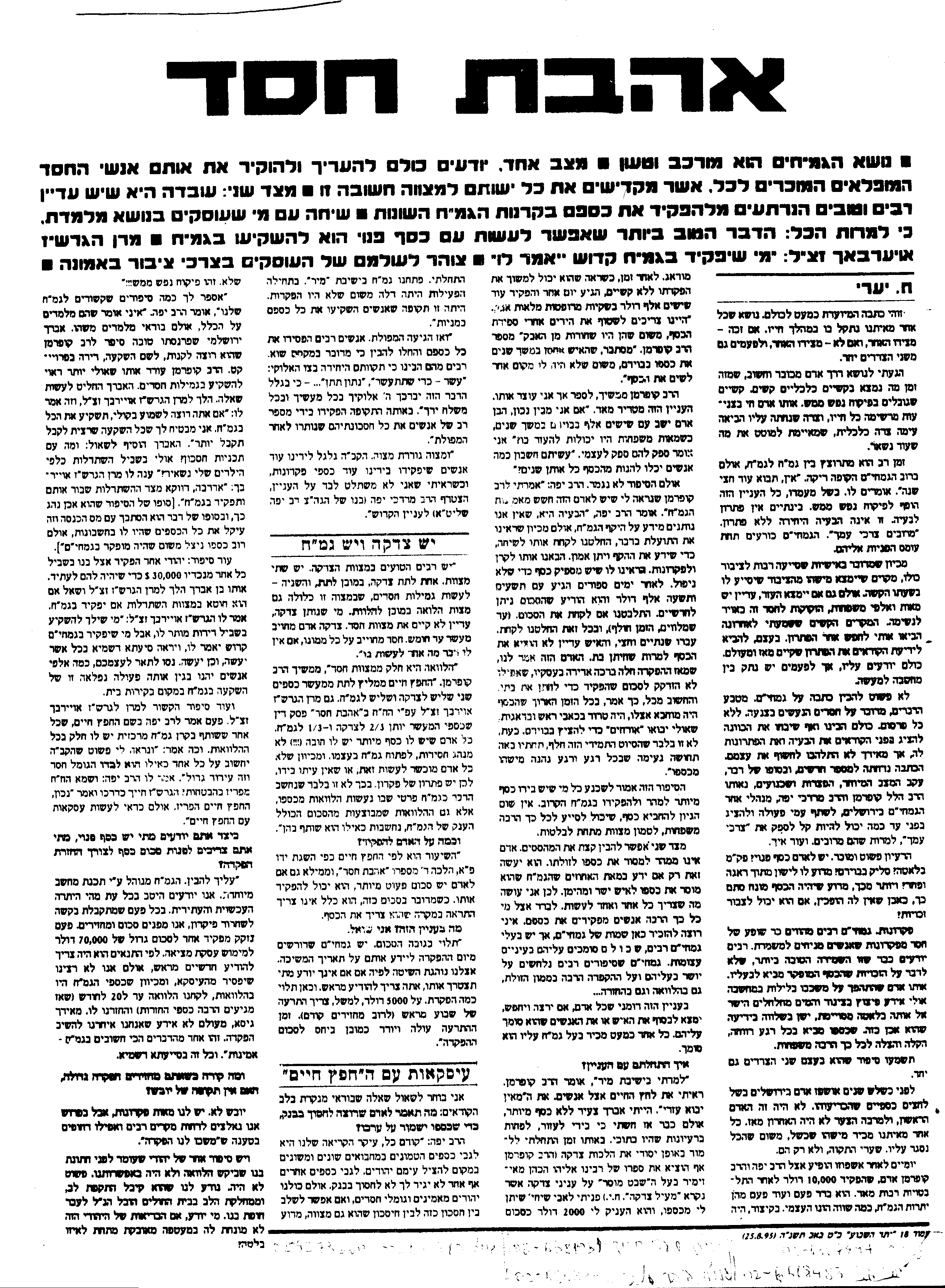 כתבה על הפקדה בגמ"ח כספים - כדאי לקרוא!