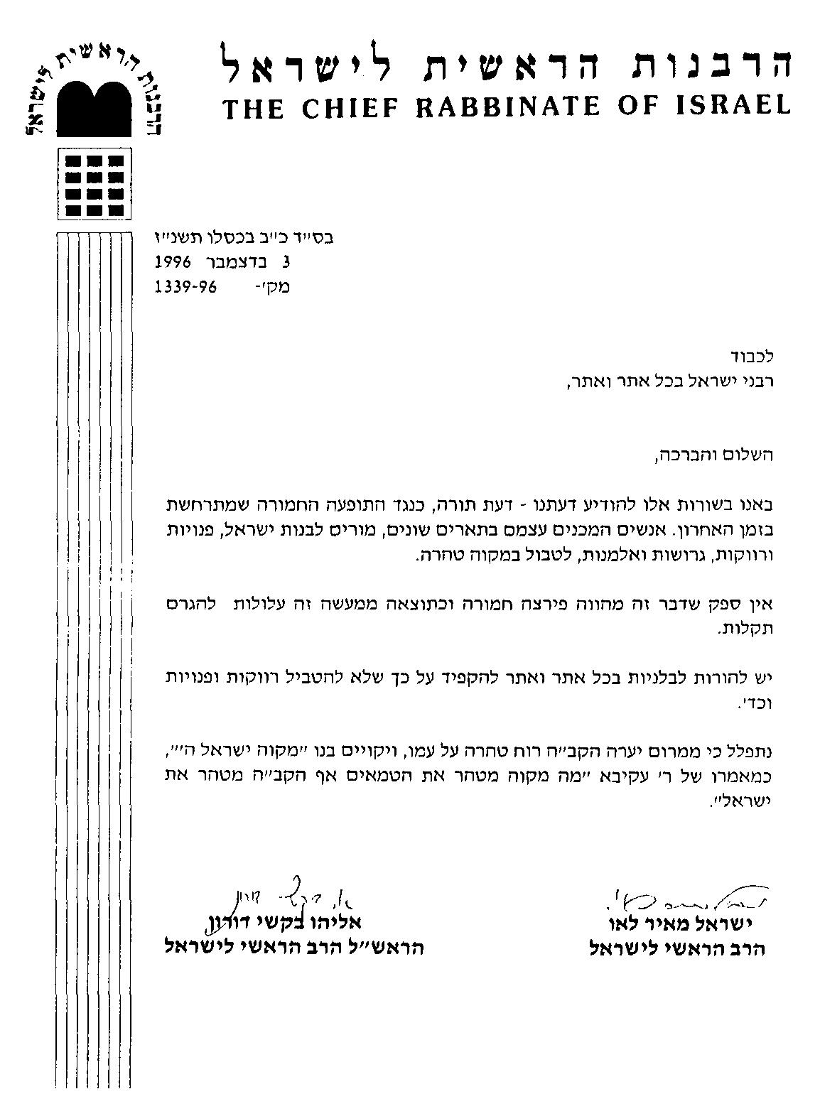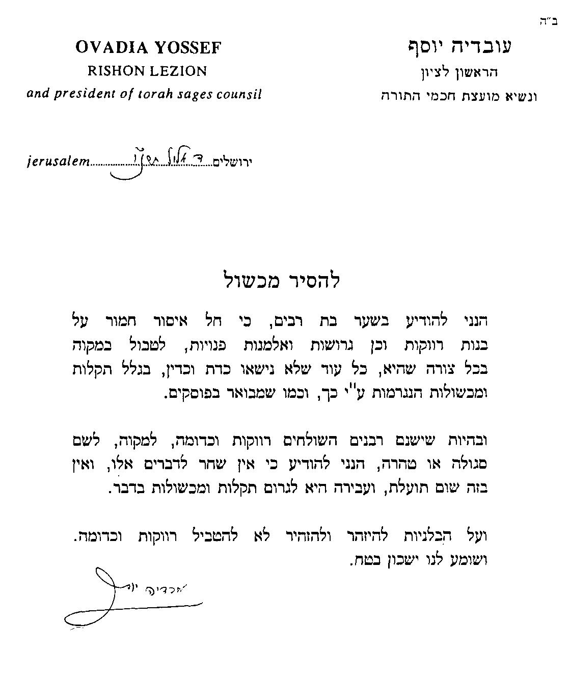 [נשלח בפקס לבית-המדרש "מאור ישראל", בתאריך כ"ח ניסן ה'תשס"ה, 5.5.05]