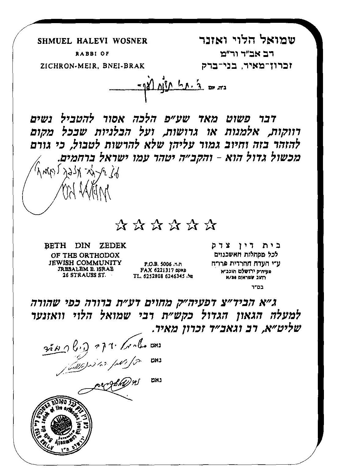 הנדון: איסור טבילה לפנויות